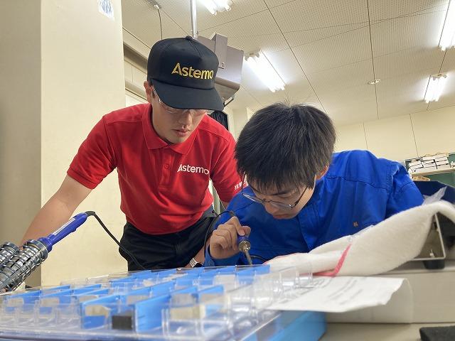 菊池隼人君(令和6年度卒・機械系)は株式会社Astemoに入社し、現在は「精密機器組立て職種」の技能五輪の候補生とのことで、通常の業務の傍ら技能五輪に出られるように、日夜自身の知識や技術向上に向け研鑽に努めているとのことでした。