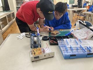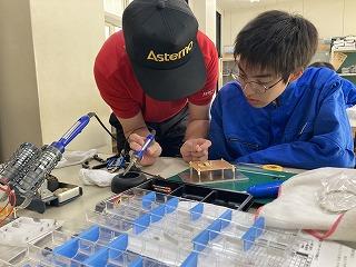 また、今回の報告の際に「3級電子機器組立て作業」の実技試験の指導を行っていたこともあり、報告のついでに後輩たちのの技能検定の練習を見てくれました。
