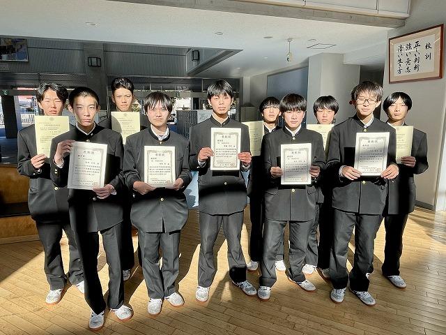 表彰式では運動部・文化部・技能検定の優秀賞が表彰されました。