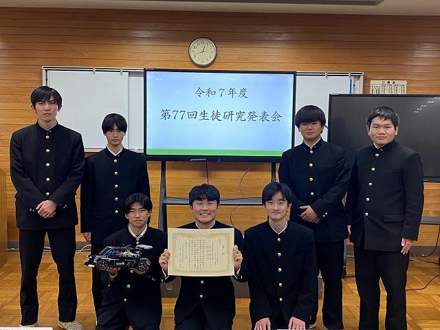 「マグネットカップリングを使用したラジコンカーの製作」の研究で優秀賞を獲得しました。
